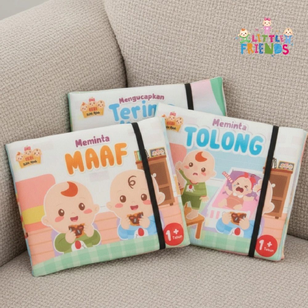 Little Friends Soft Book Seri Kata Ajaib adalah buku kain edukatif yang dirancang khusus untuk membantu anak mengenal dan membiasakan kata-kata sopan sejak usia dini, seperti terima kasih, tolong, maaf, dan permisi. Disajikan melalui cerita sederhana dan ilustrasi menarik, soft book ini membuat proses belajar menjadi menyenangkan, interaktif, dan mudah dipahami anak.